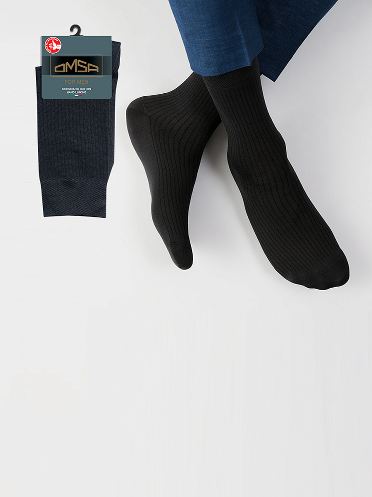 Мужские носки OMSA в элегантную тонкую полоску. В составе высококачественный мерсеризованный хлопок - экологичный, шелковистый материал, для получения которого хлопок проходит сложный процесс мерсеризации. Удобная мягкая резинка способствует оптимальному прилеганию, а кеттельный (плоский) шов создает дополнительный комфорт. Укрепленные мысок и пятка увеличивают износостойкость и прочность.