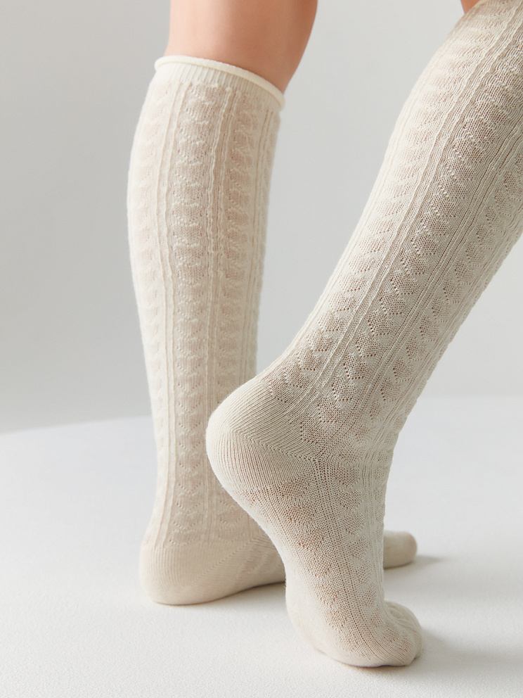 Детские ажурные гольфы для девочек с руликом на борту и рисунком в виде сердечек. В составе –высококачественный хлопок, который обладает высокой воздухопроницаемостью, отлично впитывает влагу, приятен на ощупь и подходит даже для чувствительной детской кожи.