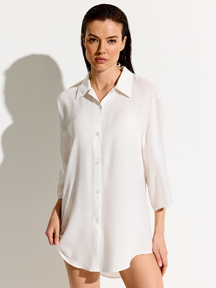 Стильная легкая туника эффектно сочетается с шортами и юбками. Отлично подойдет для создания пляжных и отпускных образов.