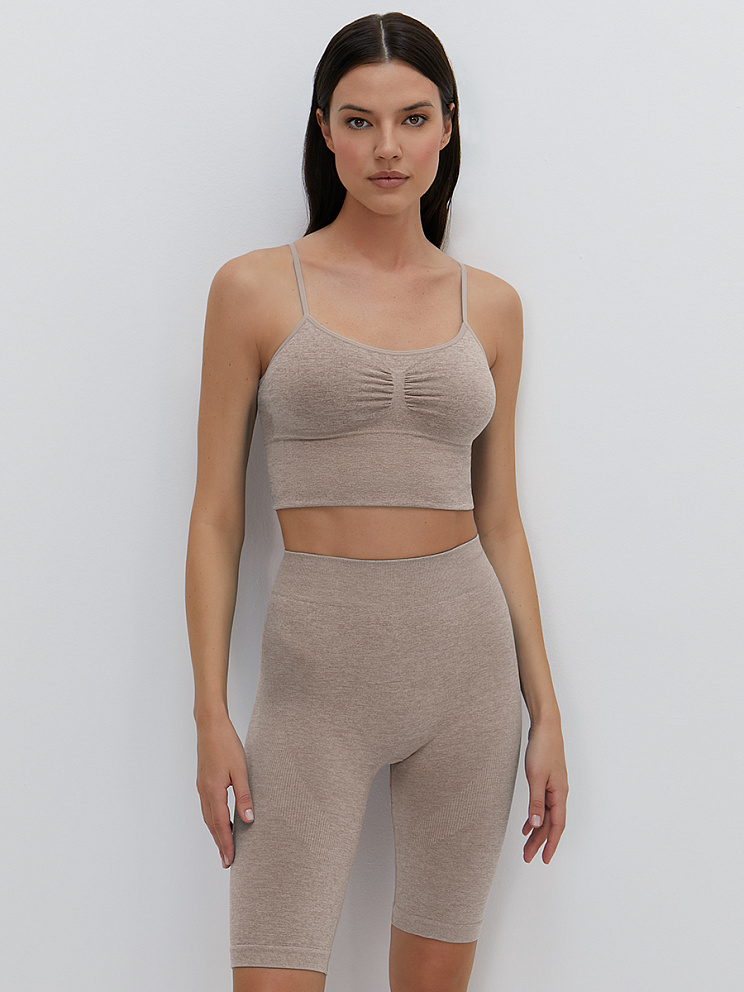 Бесшовные велосипедки с высокой линией талии. Выполнены из мягкой микрофибры, которая приятно ощущается на теле, отлично пропускает воздух, впитывает влагу, хорошо сохраняет форму и цвет.